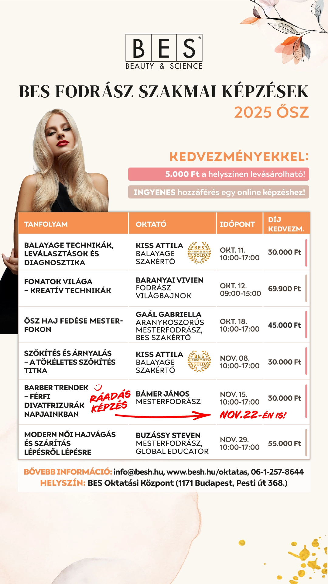 A fodrászok világszerte már 60. éve bíznak töretlenül a BES – Beauty and Science termékekben. A szakembereknél a szalonban bevált, szeretik és használják, nem is csoda, hiszen egy folyamatosan fejlődő és minden igényt kielégítő márkáról van szó.